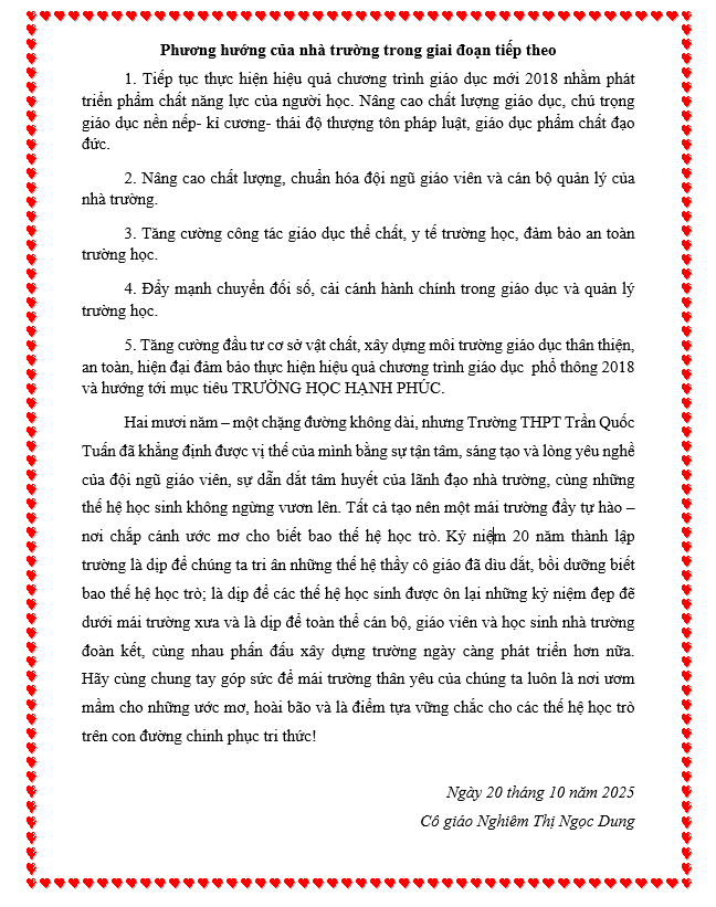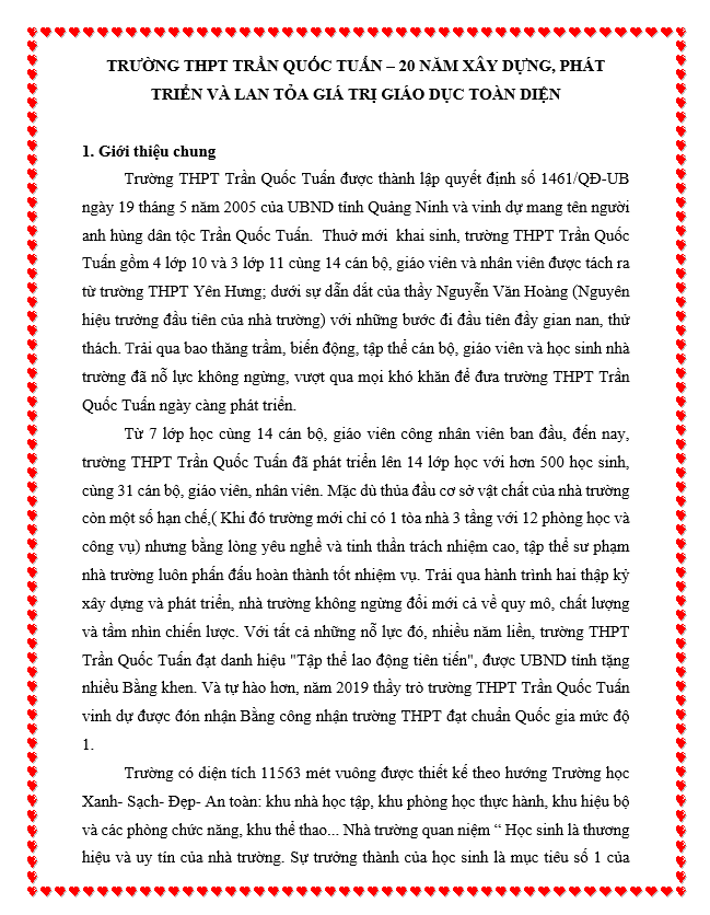 TRƯỜNG THPT TRẦN QUỐC TUẤN – 20 NĂM XÂY DỰNG, PHÁT TRIỂN VÀ LAN TỎA GIÁ TRỊ GIÁO DỤC TOÀN DIỆN